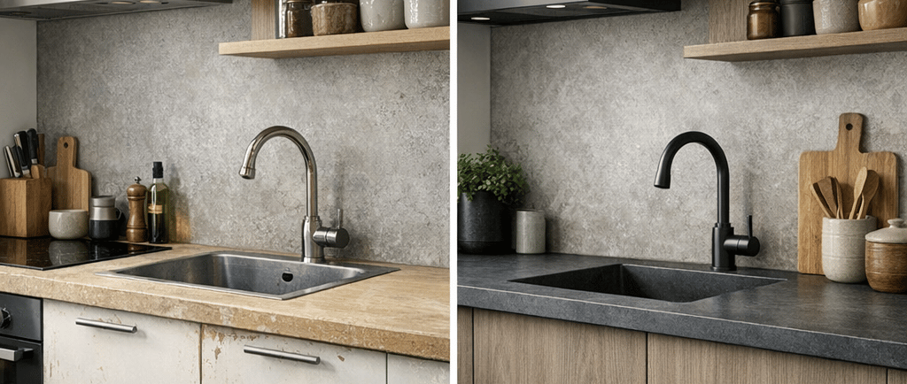 Het resultaat is een keuken die er weer modern, strak en verzorgd uitziet — zonder rommel, stof of lange verbouwing.