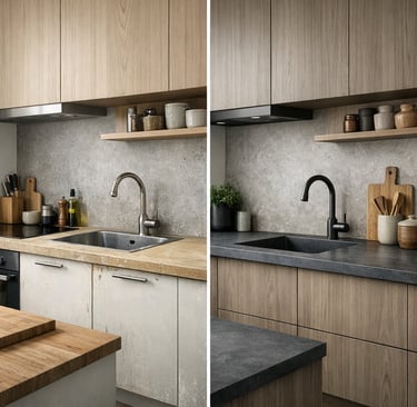 Waarom een complete keuken vervangen als dat helemaal niet nodig is? Met plaatselijk keukenwrappen verdwijnen krassen, verkleuringen en slijtage volledig uit het zicht. Denk aan: