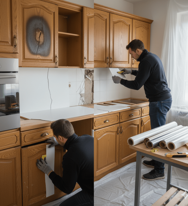 Heeft uw keuken een beschadigde keukendeur of een versleten aanrechtblad, maar wilt u geen dure verbouwing? Dan is keukenherstel door wrappen dé slimme oplossing. Met plaatselijk wrappen herstellen wij uw keuken snel en vakkundig, zodat deze er weer strak en als nieuw uitziet — tegen een fractie van de kosten van vervanging.